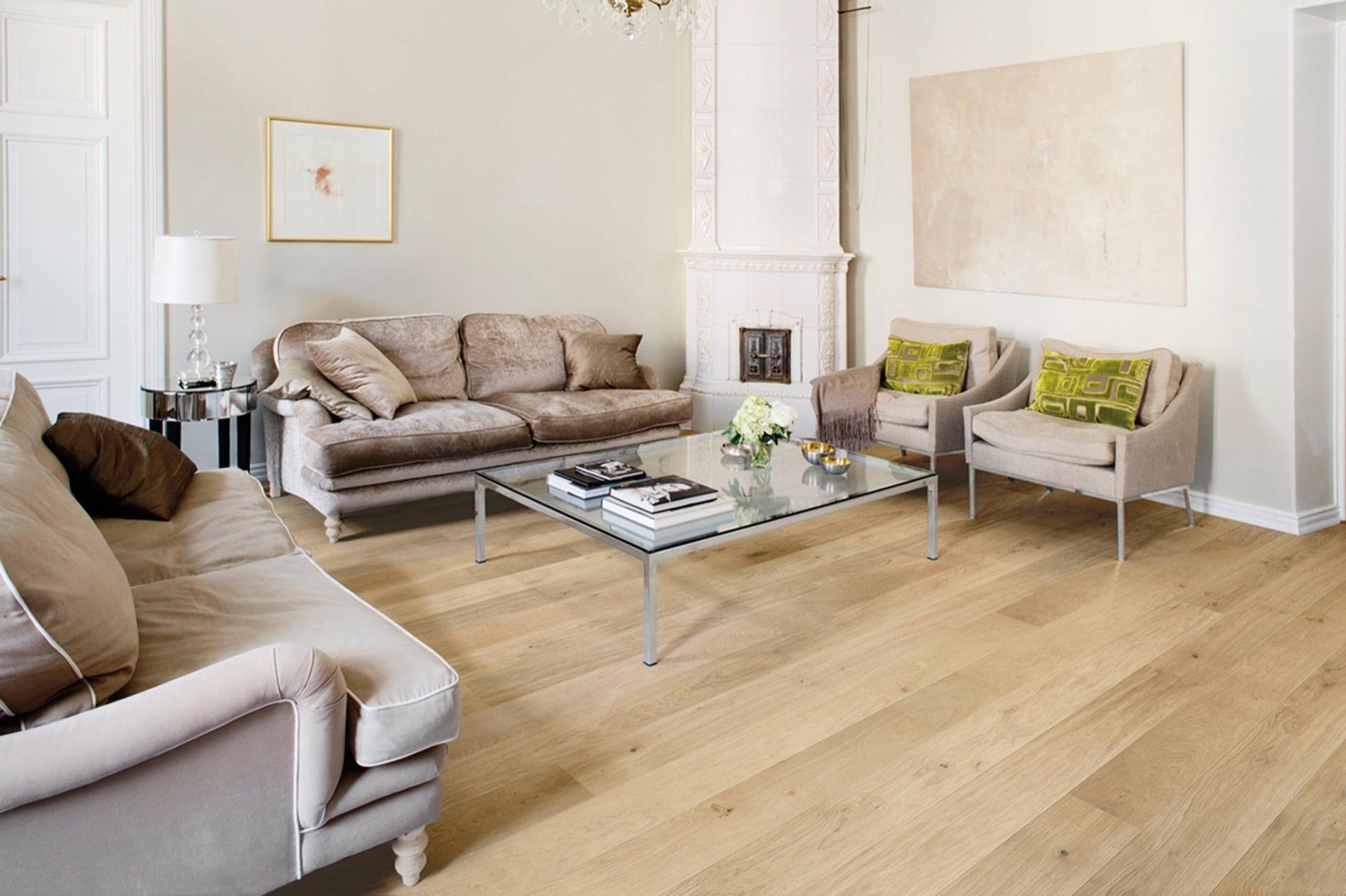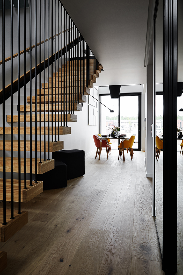 In 2017, as the flooring material for the detached house we chose Timberwise Oak Classic Nordic (15 x 185 x 2,180 brushed hard wax-oiled wooden flooring). We have lived in our home for well over three years now, and have been really happy with our choice. The shade turned out to be ideal for us, and the brushed surface is absolutely lovely to walk on.